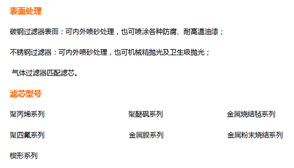 濾芯材料:聚醚砜、聚乙烯、聚四氟乙烯、不銹鋼粉末、不銹鋼折疊、鈦棒等